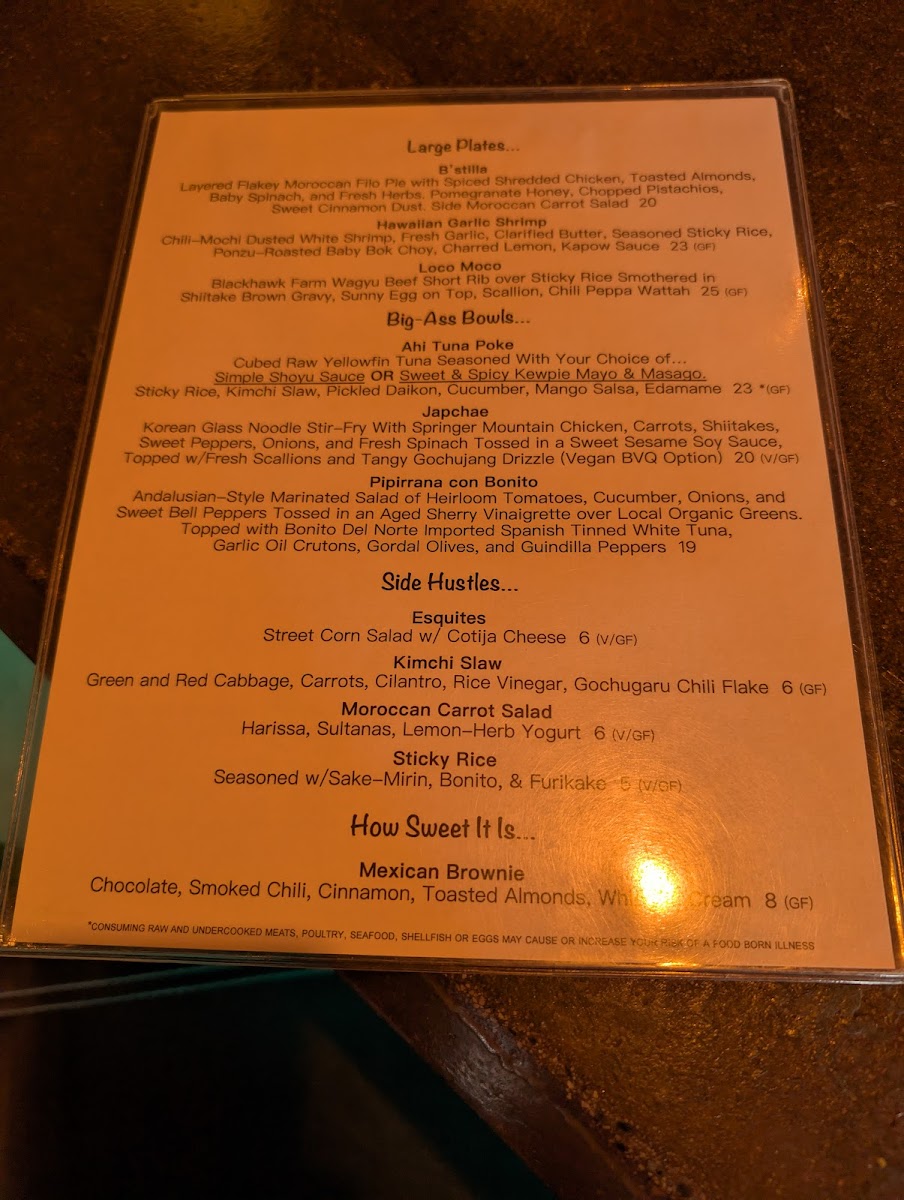 Many menu items reflect a fresh, flavorful approach with influences that add a subtle international touch. Side dishes like kimchi slaw and Moroccan carrot salad provide vibrant accompaniments, rounding out the dining experience in a way that feels both familiar and inviting.